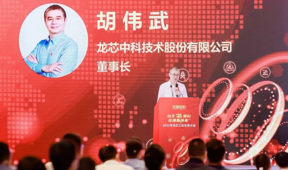 龍芯中科董事長胡偉武發(fā)表了《將自主進行到底》主題演講,整體介紹了龍芯自主創(chuàng)新成果和龍架構(gòu)生態(tài)發(fā)展布局。