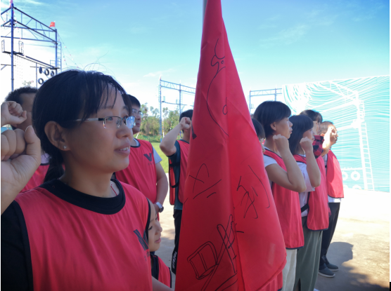 人員隨機分成兩隊,指定隊長、副隊長、宣傳員、記錄員、后勤員等職位,各隊在隊長的帶領(lǐng)下于規(guī)定時間內(nèi)完成各自的隊名、口號、隊歌,組建戰(zhàn)隊。