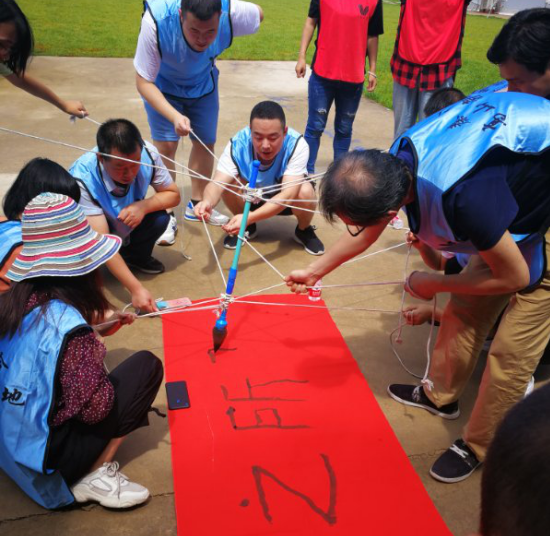 神筆馬良又稱妙筆生花,所有隊員拉繩子的末端,在不接觸毛筆的情況下,按照教練的要求完成指定的詞語。我們紅隊得到的詞語是“行勝于言”,藍(lán)隊的詞語是“心之所馳”,在我們兩隊成員的共同努力下,出色的完成了任務(wù)。