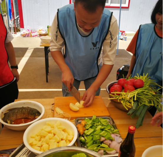 不知不覺,已經(jīng)到了用餐的時間。秉承“自己動手,豐衣足食”的理念,午餐由自己動手。大家分工明確,洗菜、切菜、生火、炒菜,有條不紊,在大家的共同努力之下,我們享用了一頓無比豐盛又美味的午餐,我們的菜品有大盤雞、酸菜魚、蒜薹炒肉、蓮菜炒肉、醋溜蓮菜、麻婆豆腐、酸辣土豆絲、西紅柿炒雞蛋。